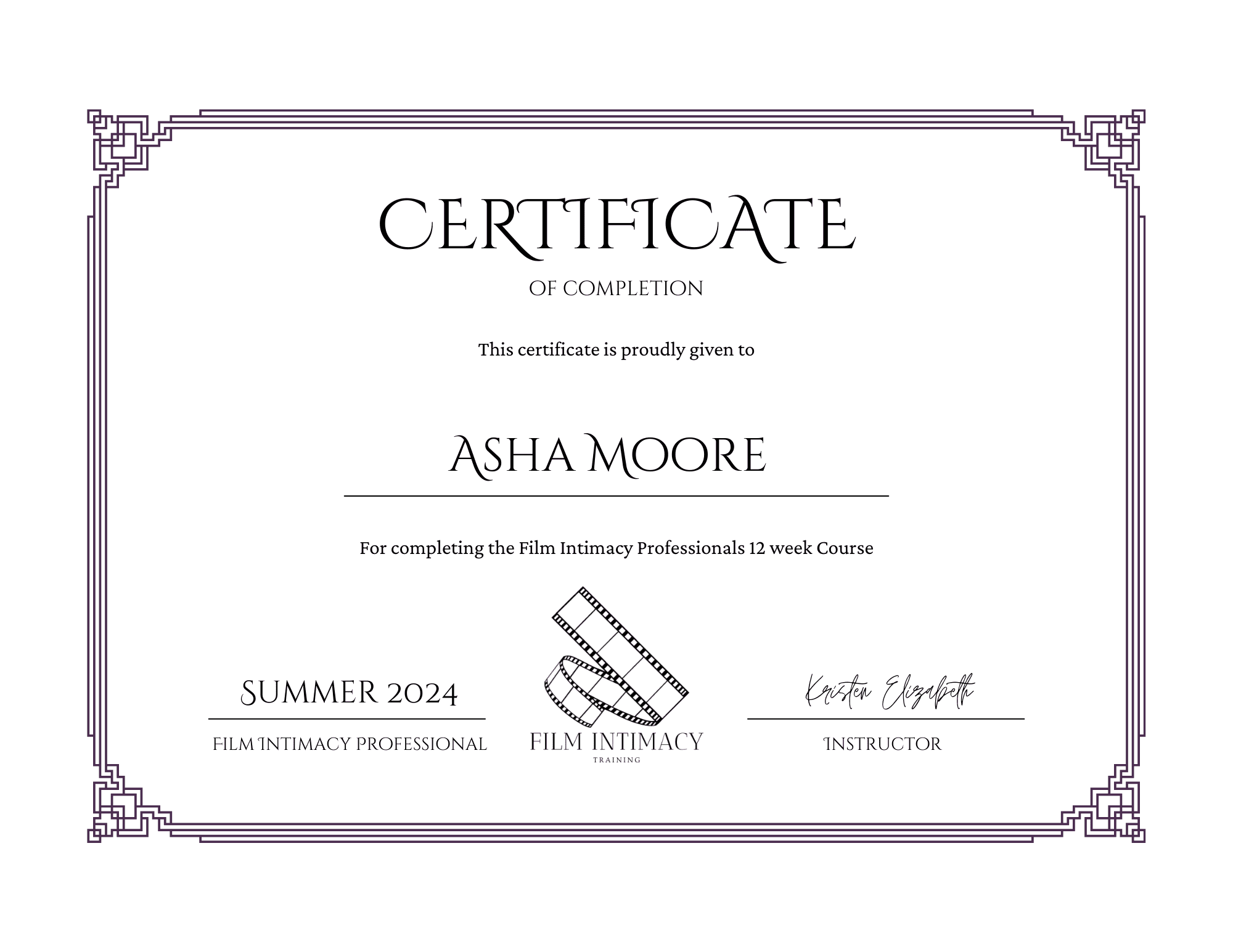 Asha Moore Asha Moore Film Intimacy Coordinator (FIC)•Los Angeles, CA, USA Film Intimacy Coordinator (FIC) Certification: Film Intimacy Professionals: 2024 - Additional Certifications: Mental health, Choreography/Movement, LGBT and anti-harassment, This user account status is Approved Production Coordinator Photos Photos Crew Page Crew Page AKS Rentals AKS Rentals Albums Photos